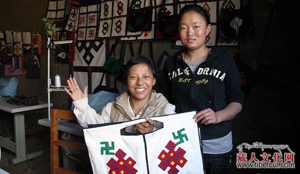 卓玛和次珍展示缝纫车间的作品